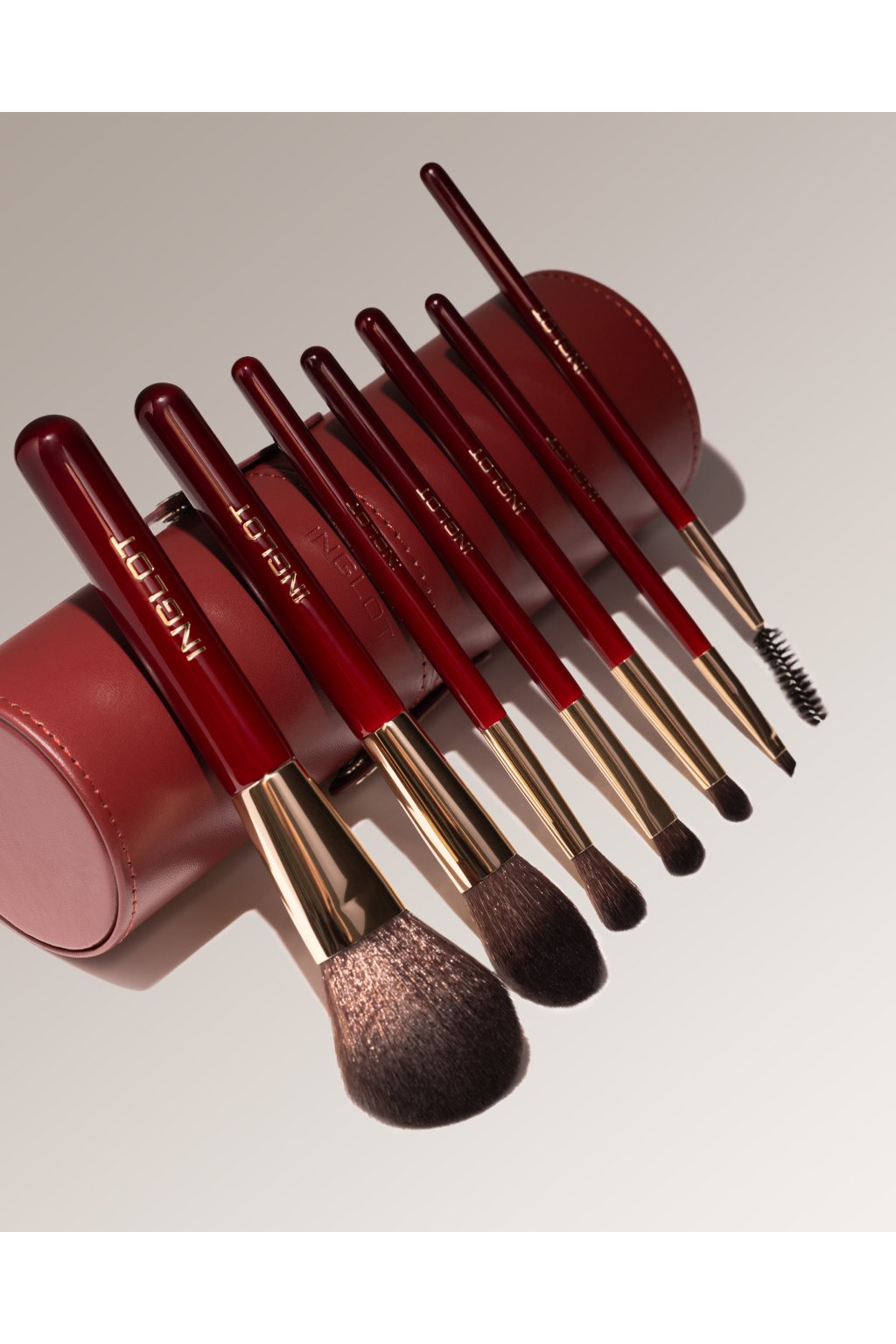 Sada 7 syntetických štetcov na make-up v elegantnej bordovej tube, ideálna na vytvorenie plnohodnotného make-upu. Mäkké štetiny, bordová rukoväť a zlatá ferula dodávajú štetcom jedinečný štýlový a elegantný vzhľad. Štetce zaisťujú pohodlné a jednoduché nanášanie a praktická tuba robí sadu ideálnou na každodenné použitie aj na cesty. Je to skvelý nápad na darček, ktorý poteší vás aj vašich blízkych.